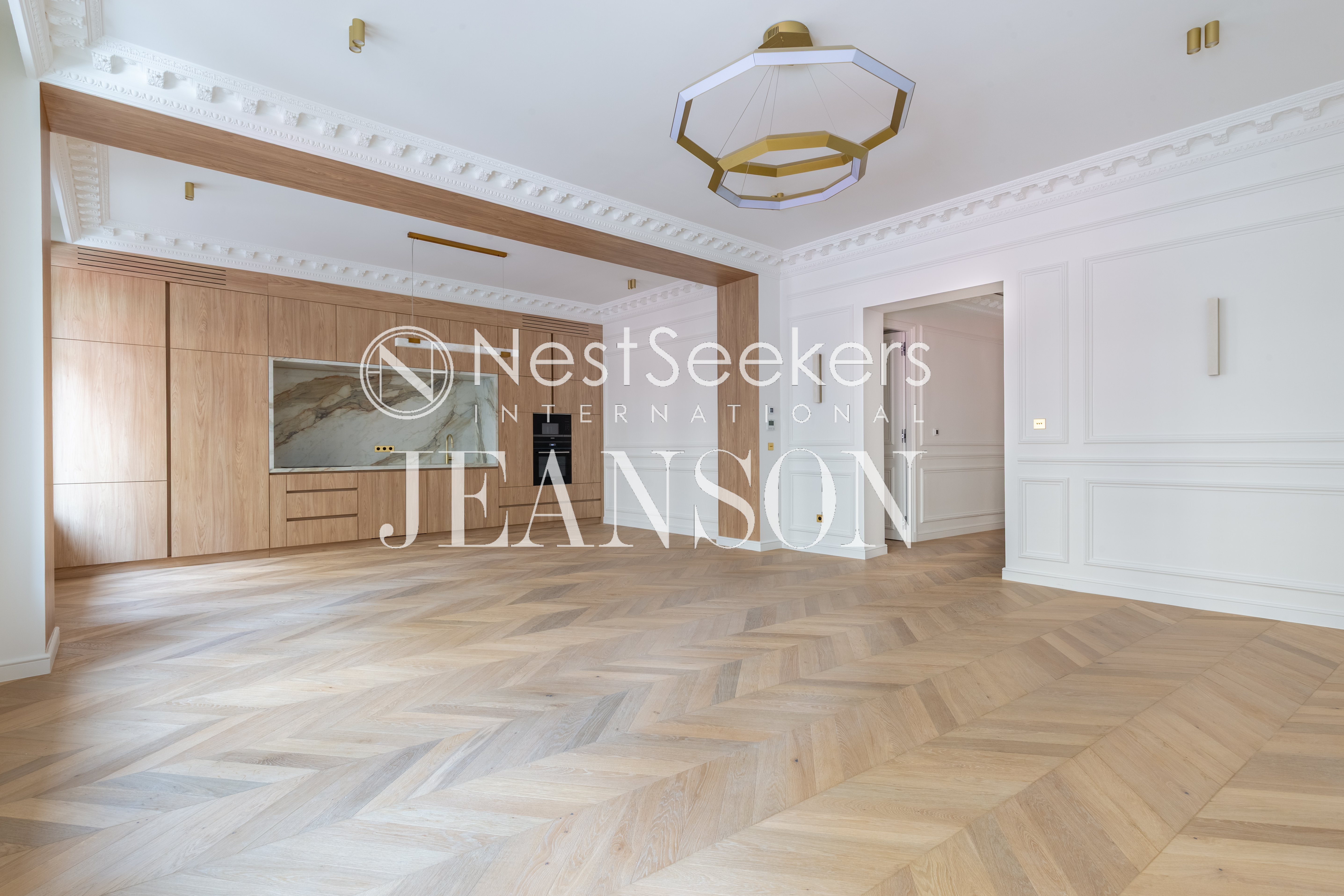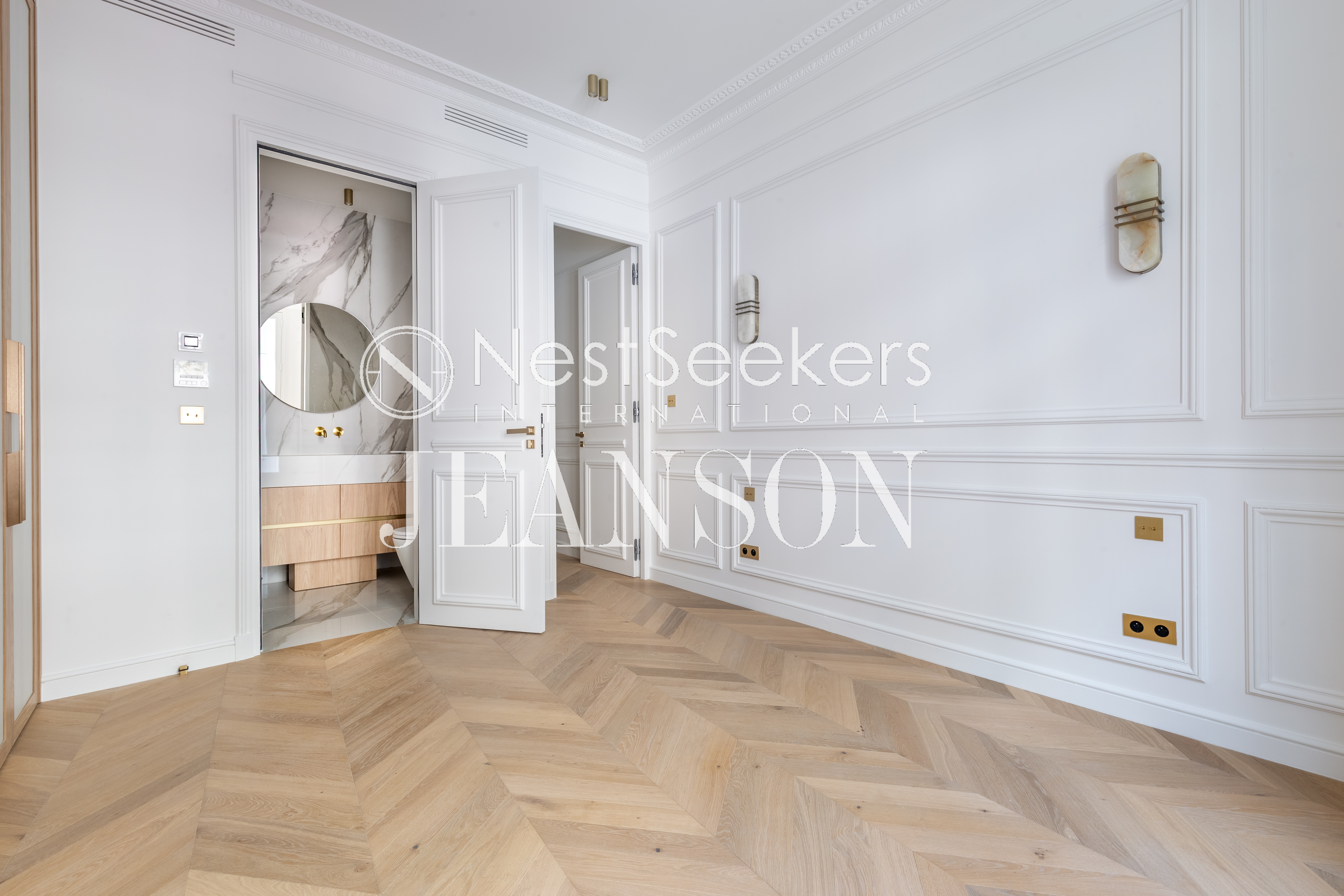 Ideally located in the heart of Paris’ prestigious Golden Triangle, between Avenue George V, Avenue Montaigne, and Rue François 1er, this exceptional 1,345 sq ft apartment has been fully renovated with high-end materials and offers beautiful natural light throughout.